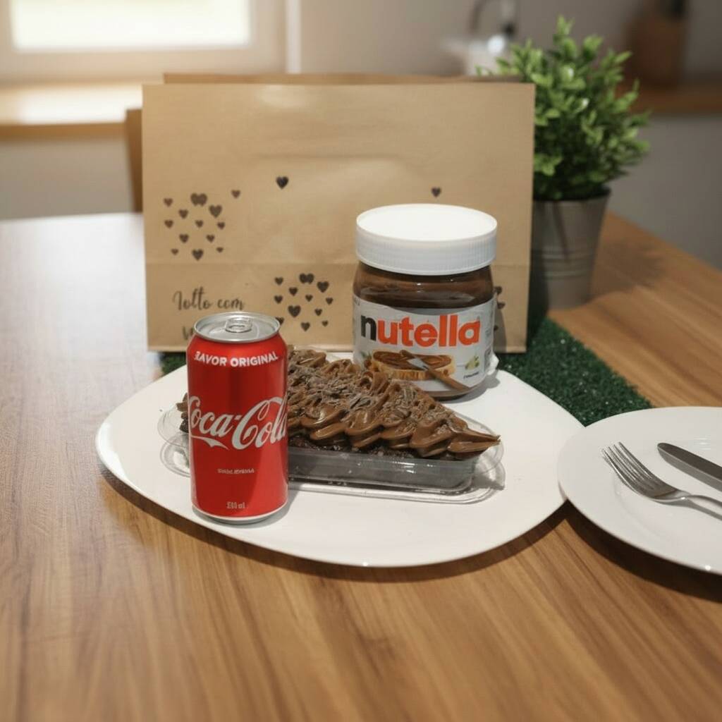 Experimente o casamento perfeito entre a cremosidade da Nutella e a suculência do nosso brownie. Cada pedaço é uma explosão de sabores que vão te conquistar. Deixe-se levar por essa tentação e garanta seu momento de puro prazer com nosso browine de Nutella e uma Coca-Cola lata de 350ml ( 200g aproximadamente )