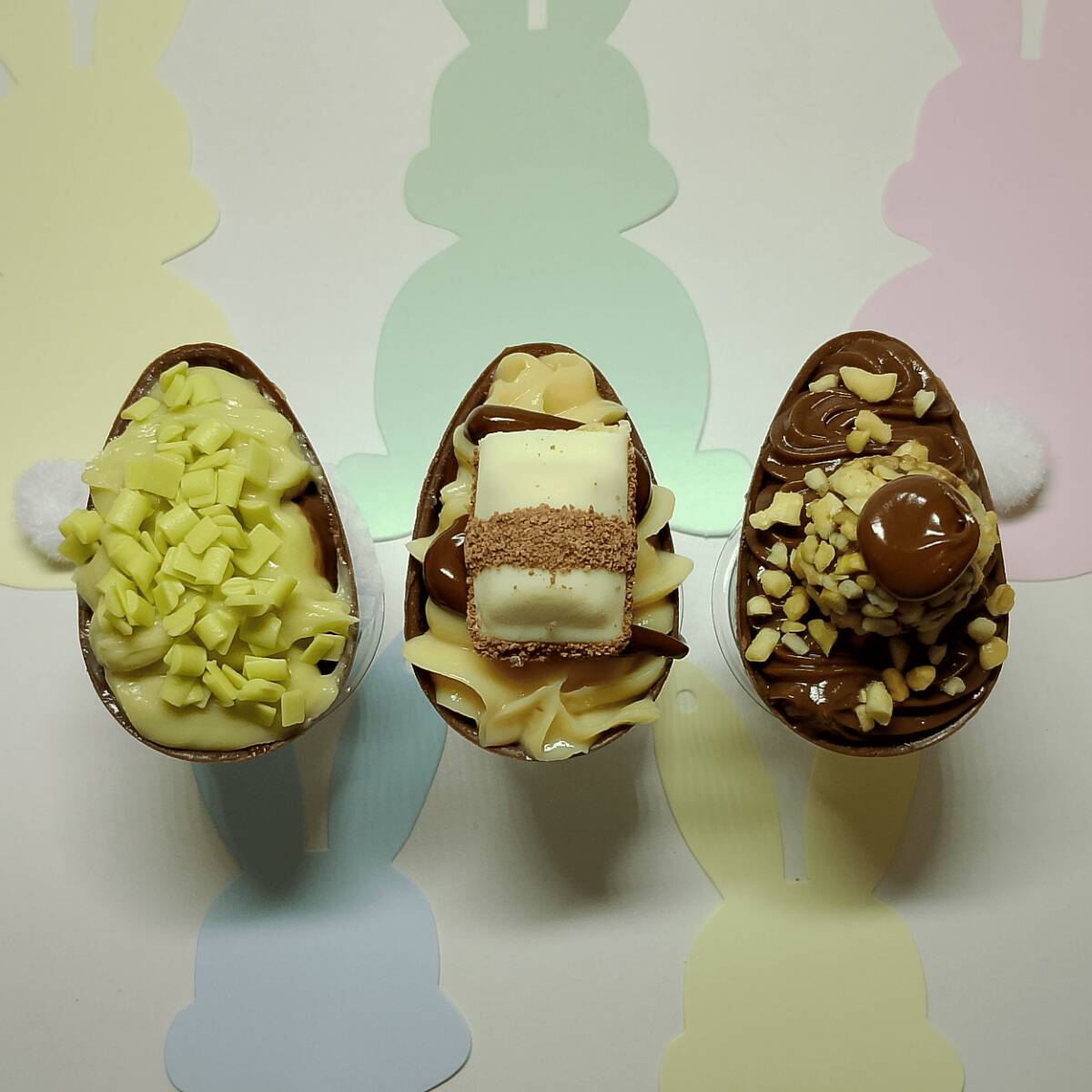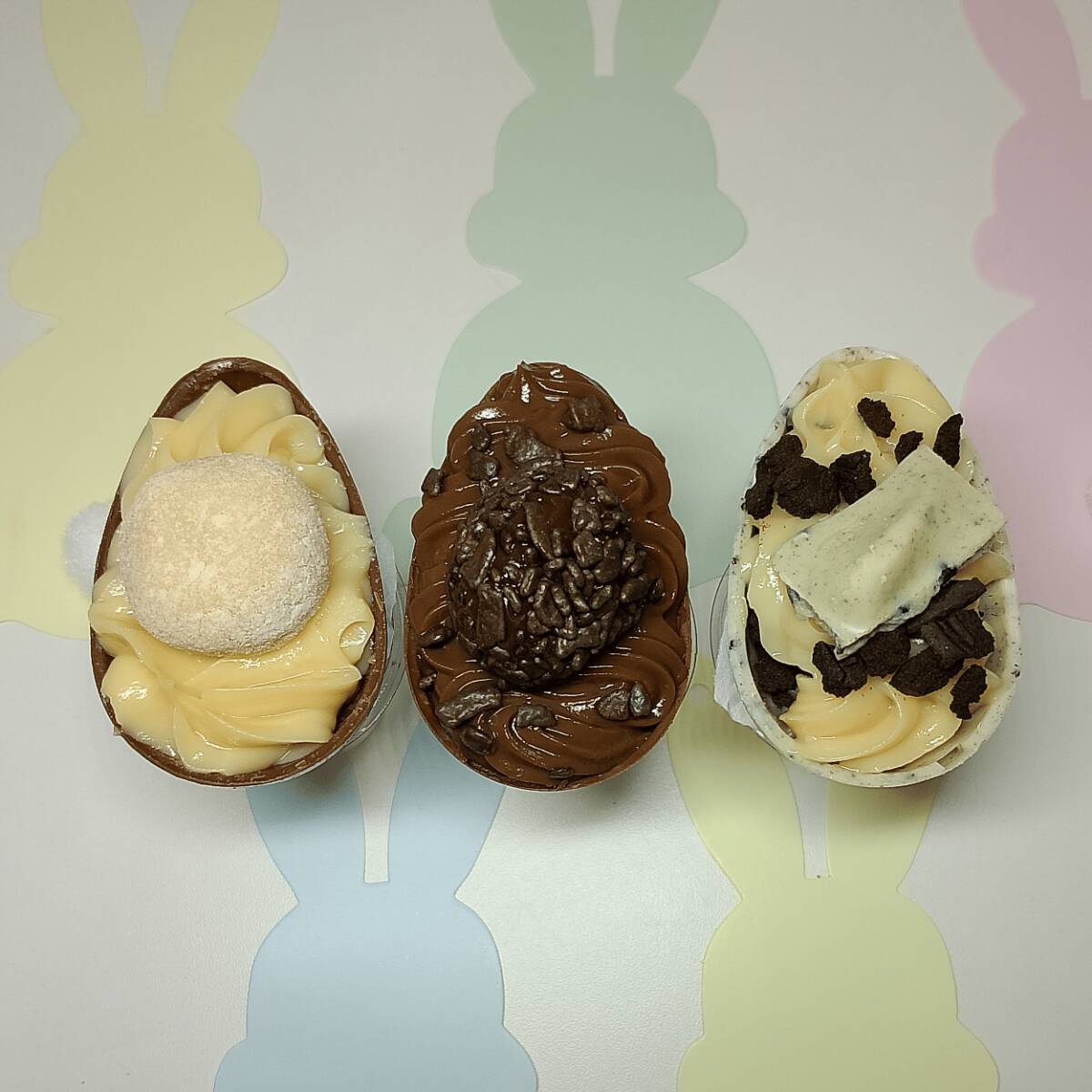 Trio de mini ovos 50g sabores, ninho, brigadeiro e Laka Oreo