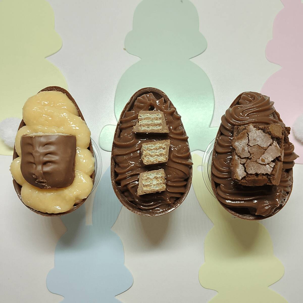 Trio de mini ovos 50g sabores brownie, kit kat e prestígio