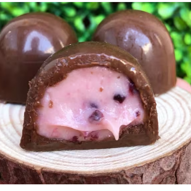 Deliciosa trufa recheada com ganache de frutas vermelhas