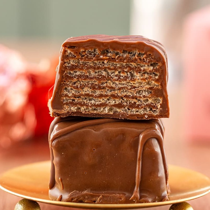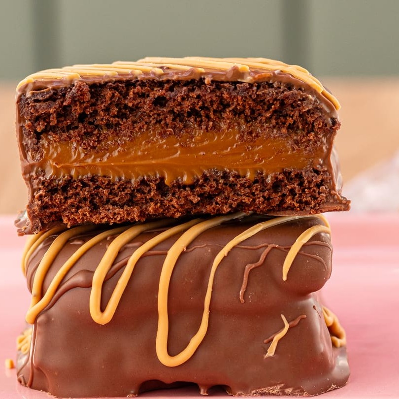 Deliciosa massa de pão de mel com especiarias, recheado com doce de leite e coberto com chocolate belga ao leite callebaut (Aprox. 90grs)