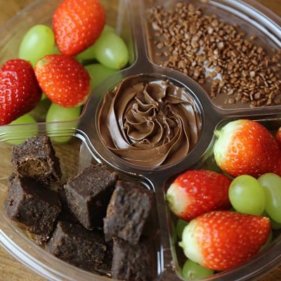 "Um mix de uva thompson, morango, brownie acompanhados de brigadeiro de colher e Nutella para da aquela ""afogada"" e se deliciar."