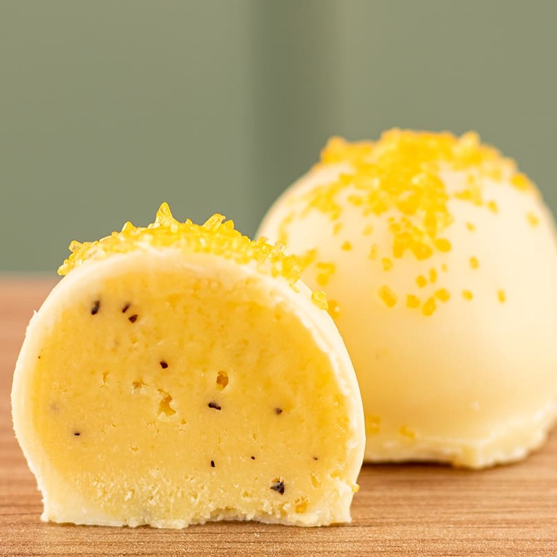 Deliciosa trufa de maracujá feita com a própria fruta in natura e coberta com chocolate branco, imperdível.