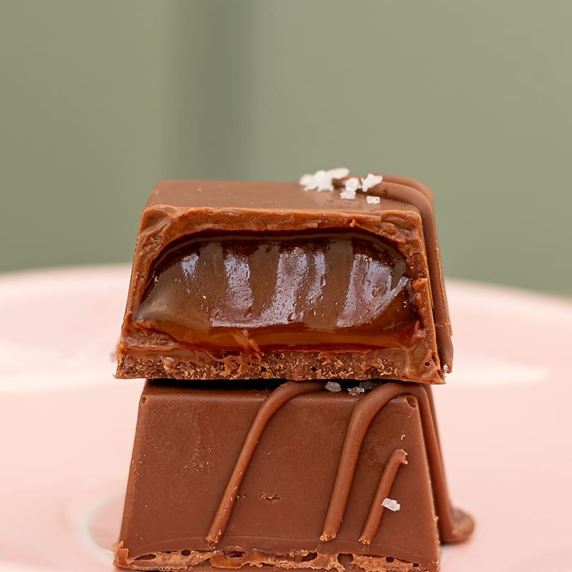 Uma mistura incrível de chocolate ao leite com um caramelo salgado feito na casa.