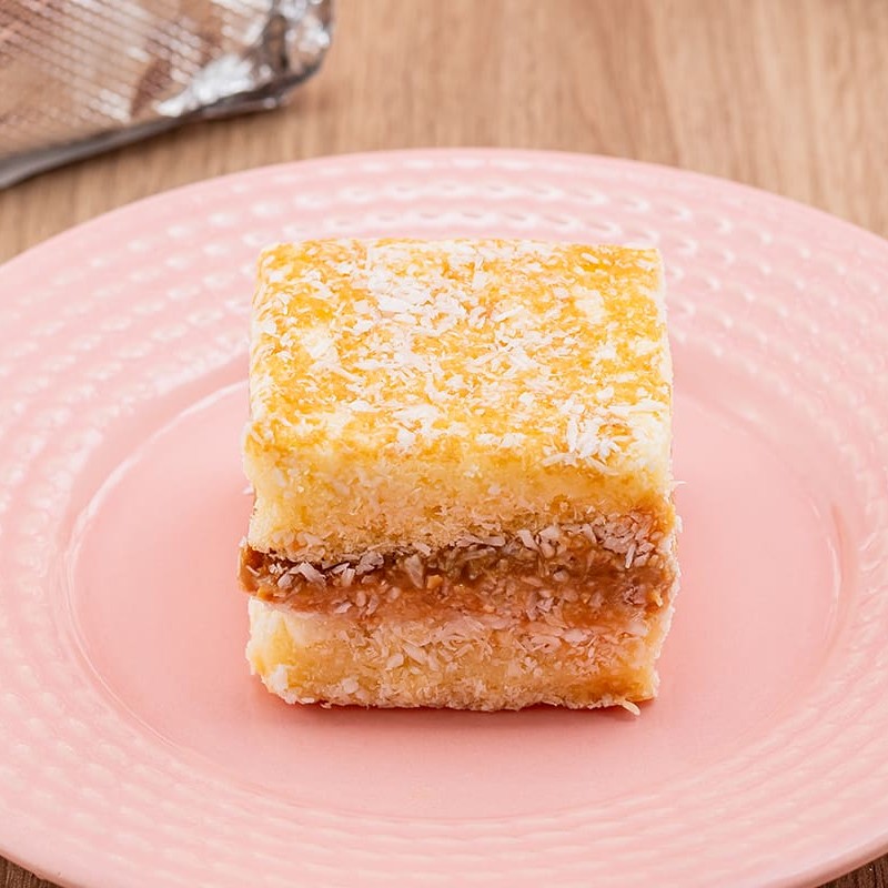Apresentamos um dos nossos campeões de venda, a 'Toalha Felpuda'. Este é um saboroso bolo gelado de coco, meticulosamente preparado ao estilo tradicional das nossas avós. Embalado individualmente em papel alumínio, cada pedaço tem o peso mínimo aproximado de 110 gramas.