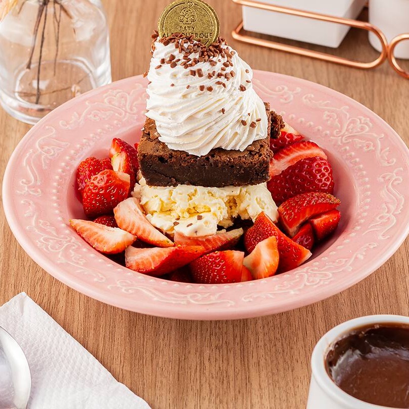 Ice Brownie - Brownie + Morangos Frescos + Sorvete + Chantilly