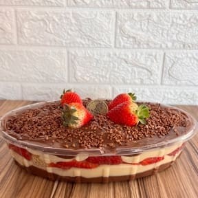 Maravilhosa sobremesa feita com nosso brigadeiro ao leite de chocolate belga, um creme branco a base de leite condensado e pedaços de morango que garantem um equilíbrio no sabor. Sua sobremesa pode chegar com uma calda dentro, mas não se preocupe é super normal por conta do morango, o que garante mais sabor. obs.1: Produto de consumo imediato obs.2: Não é possível alterar nenhum produto, retirar ou adicionar ingredientes. obs.3: Os produtos podem ir com vencimento para o mesmo Dia.