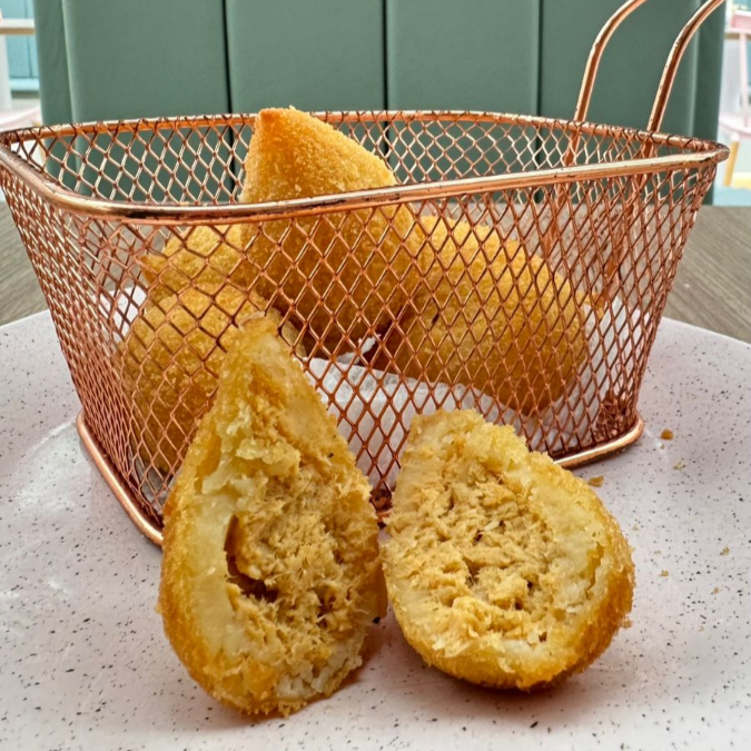 Descubra o encanto da nossa Coxinha de Frango com Catupiry Original, uma das estrelas da nossa categoria 'Os mais vendidos'. Com uma massa delicadamente moldada à mão, recheada com um frango desfiado suculento e enriquecido com Catupiry Original. obs.1: Produto de consumo imediato obs.2: Não é possível alterar nenhum produto, retirar ou adicionar ingredientes. obs.3: Os produtos podem ir com vencimento para o mesmo Dia.