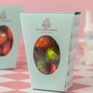 Blister em formato de ovo com 100 gr de chocolate ao leite maciço e drage. - 100 gr