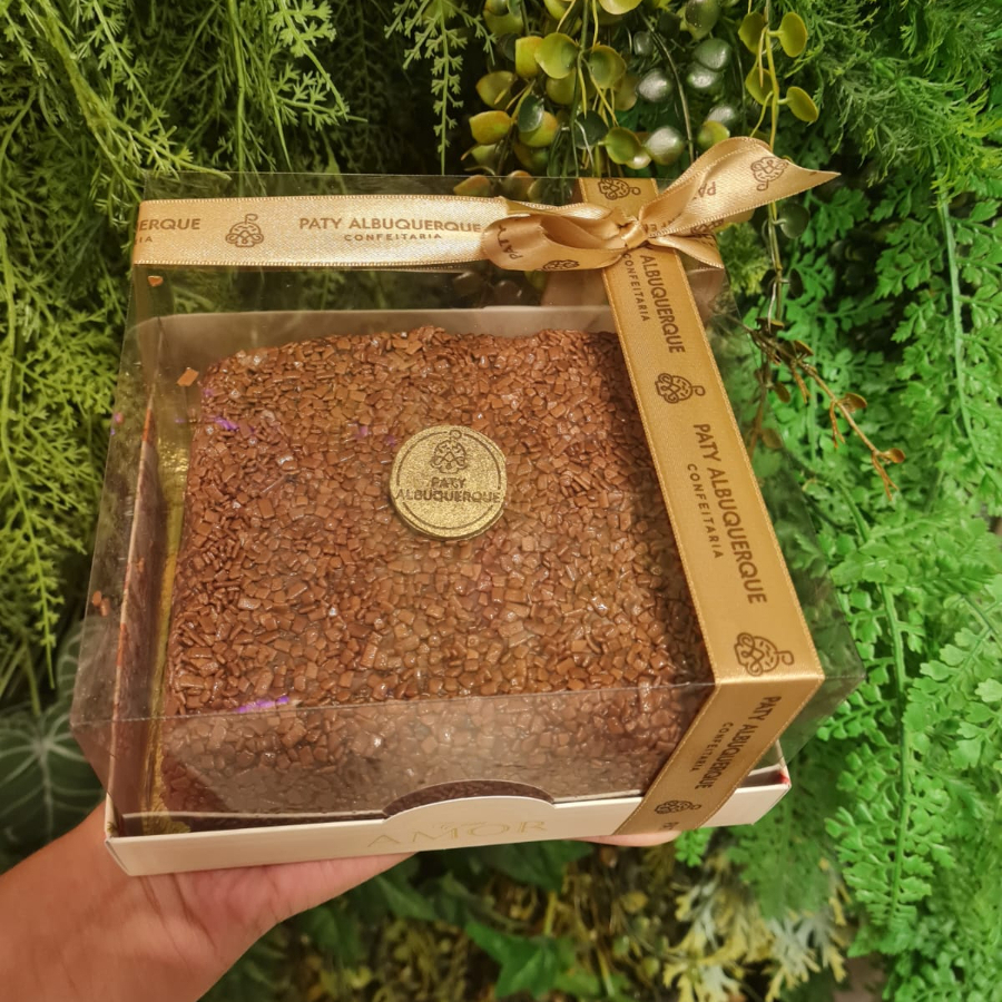 Bolo de chocolate bem úmido com brigadeiro gourmet de colher e Nutella com crocante artesanal. 180g