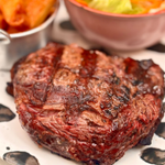 Nosso suculento bife ancho com um acompanhamento a escolha.