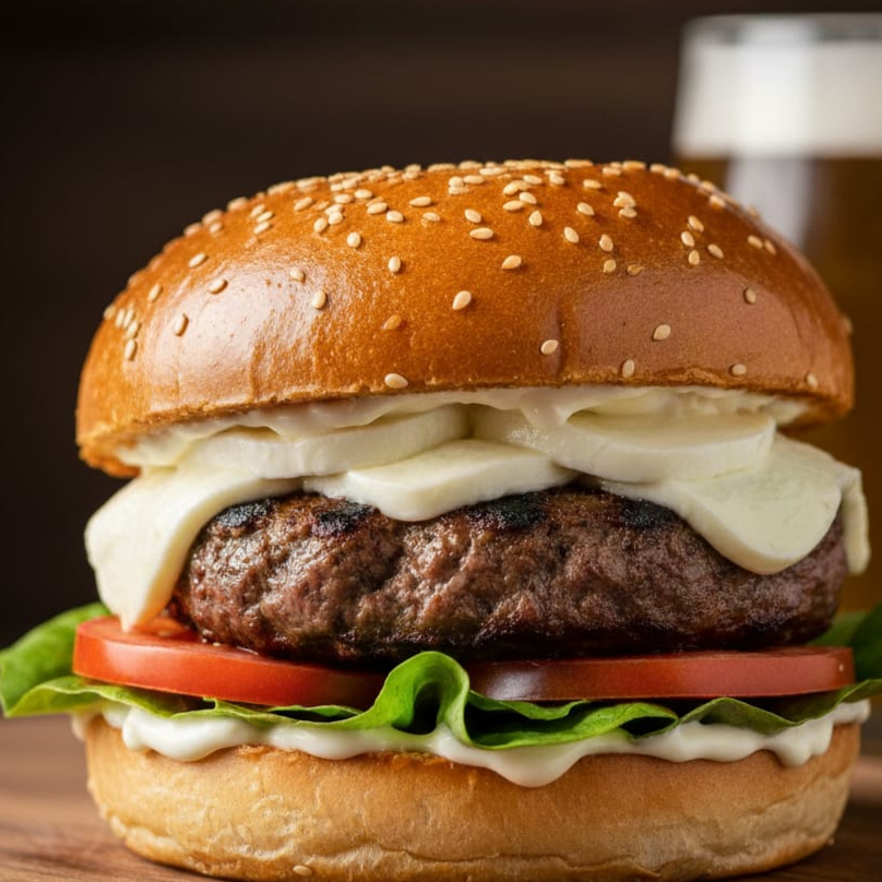 1 Pão de Hambúrguer, 1 Hambúrguer de 90g, Queijo Mussarela, Alface Americana, Tomate e Maionese