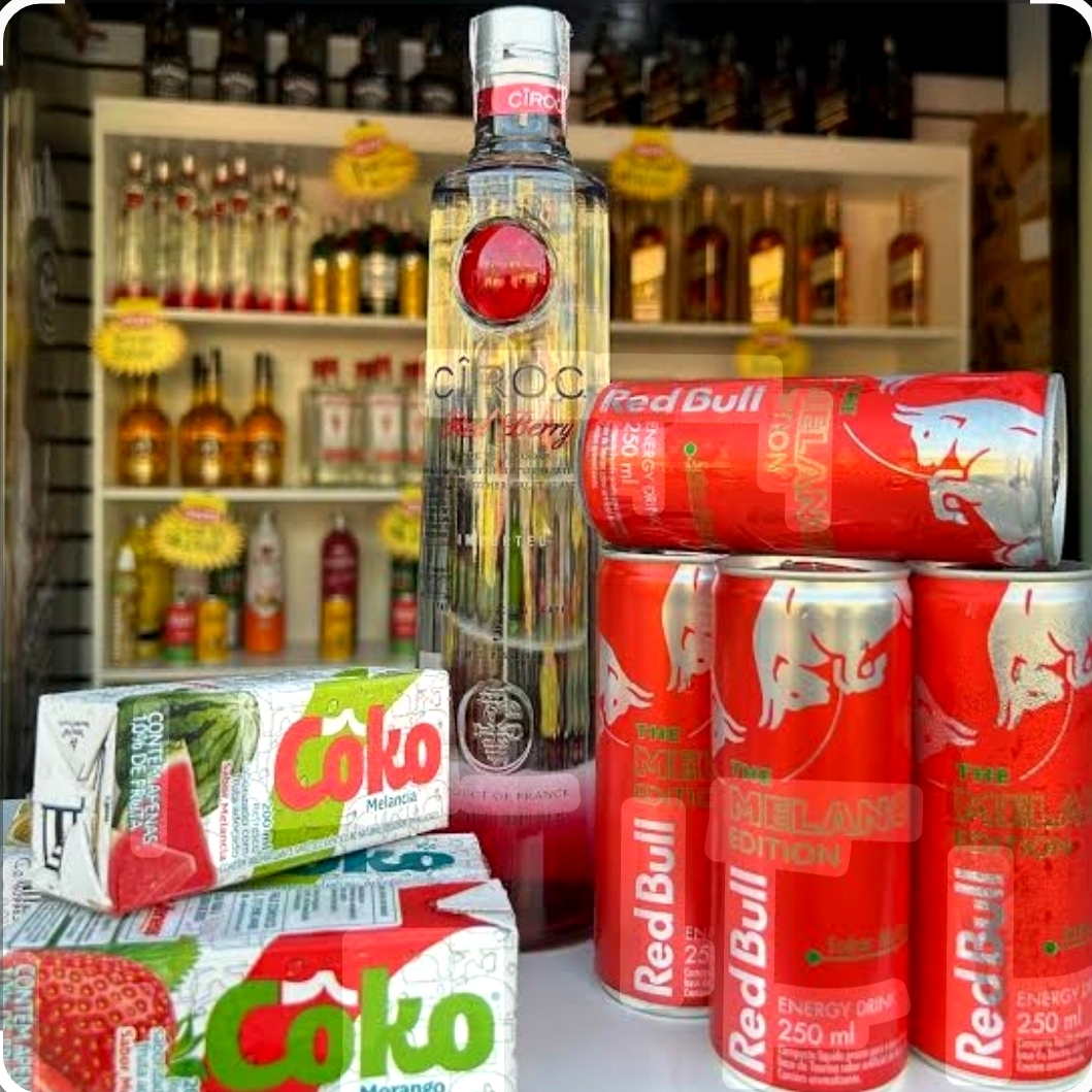 Acompanha 1 gelo de morango, 1 red bull melancia e 1 pct fruta