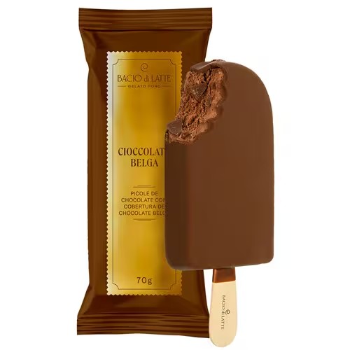 Picolé Chocolate Cobertura Chocolate Belga Bacio Di Latte 70g
