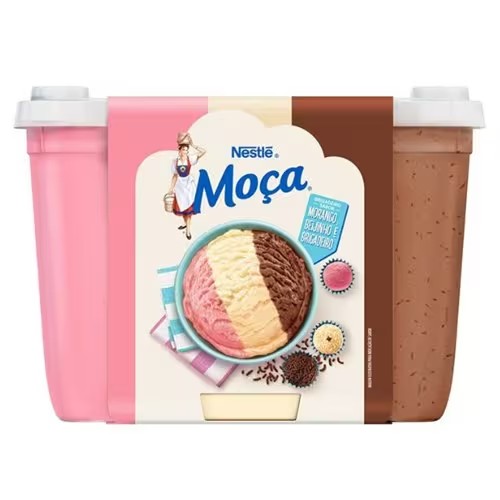 Sorvete Moça Sabor Brigadeiro De Morango, Brigadeiro De Chocolate E Beijinho De Coco Nestlé Pote 1,5l