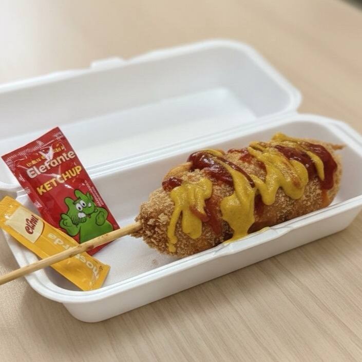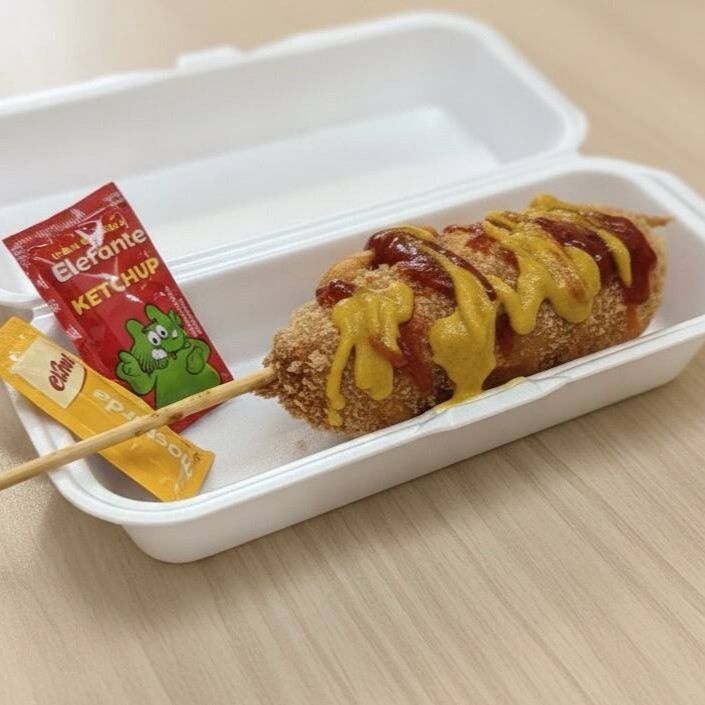 Hotdg Coreano crocante e gostoso ! Frito com a massa caseira e com salchicha Perdigão. Açúcar opcional ! Colocamos por fora depois de fritar :) Fica uma delícia !