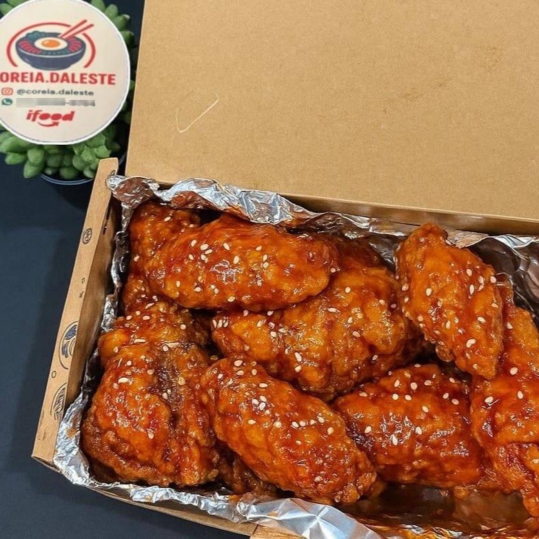 Frango crocante mergulhado em molho picante coreano. Sabor intenso que você não vai esquecer! Médio serve 1-2 pessoas e grande serve 2-3 pessoas.