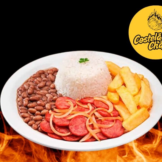 Apresentamos a nossa deliciosa calabresa acebolado, grelhado na chapa ao ponto. Ela é acompanhado de um arroz soltinho, feijão, batata frita e farofa da crocante. Delicie-se!