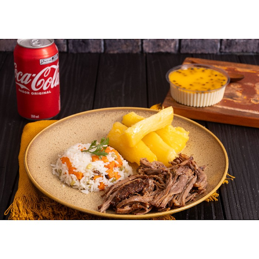 Marmita da melhor costela bovina feita na churrasqueira a bafo por mais de 8hrs, com mais dois acompanhamentos feito com muito amor e carinho da sua escolha.