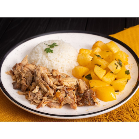 Suculenta Costela Suína Feita No Bafo Por mais de 8hrs, acompanhado por um arroz soltinho e fresco mais nossas batatas saute...