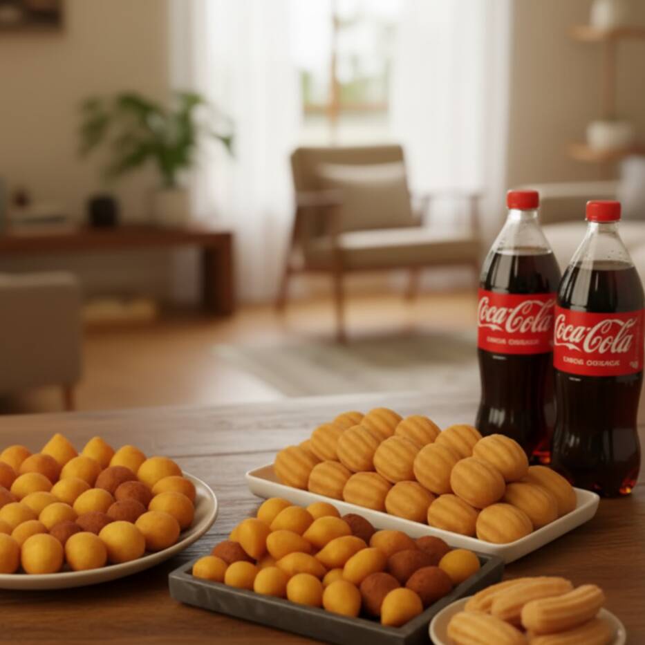 50 Salgados Festa (20g cada)+ 20 Mini churros + Refri 2L