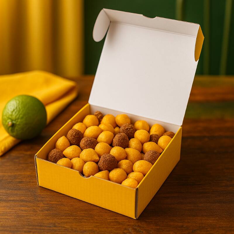 Cada mini salgado pesa aproximadamente 8g. Saboreie o 'Box 100 Unidades', um equilíbrio apetitoso e irresistível de mini salgados variados. Esta seleção contém: coxinha de frango, bolinho de queijo cremoso, croquete de calabresa, risole de presunto e queijo, e kibe crocante.