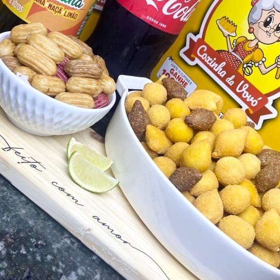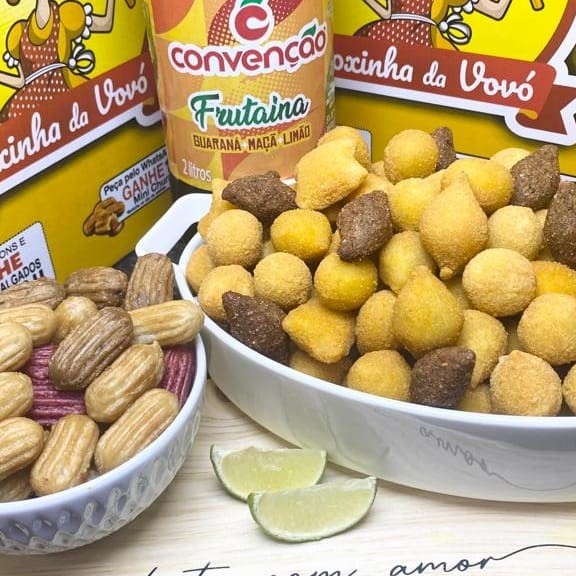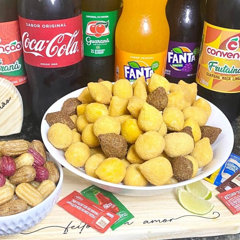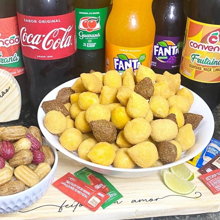 50 salgados festa + 25 churros mini + 01 refrigerante 2l