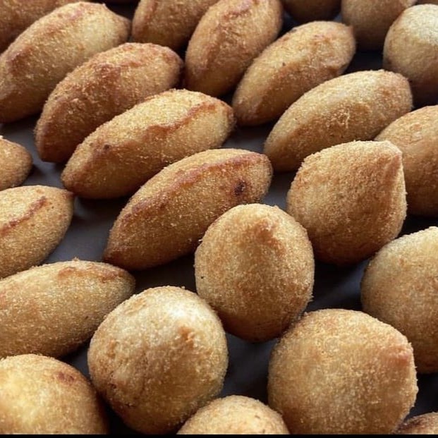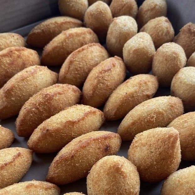10 Unidades de risoles de presunto e queijo. Peso unitário de 37 Gramas.