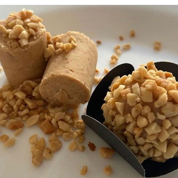 Doce de brigadeiro ao leite com amendoim.