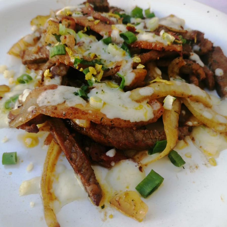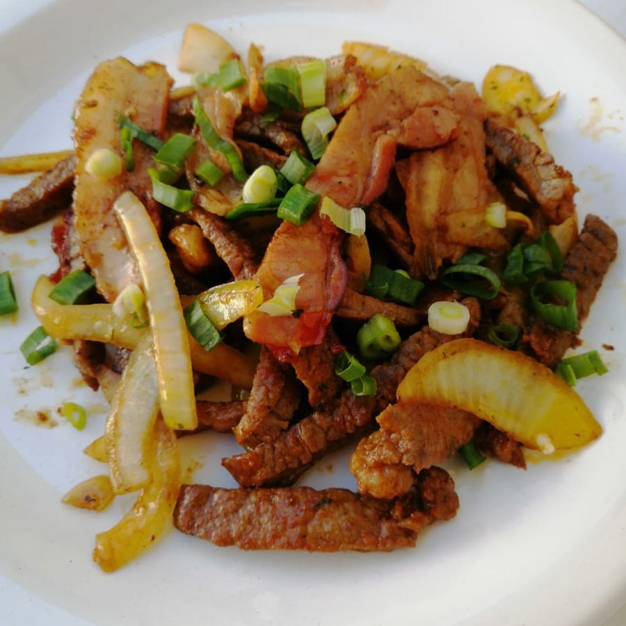 Bife Fatiado Acebolado Com Fatias De Bacon