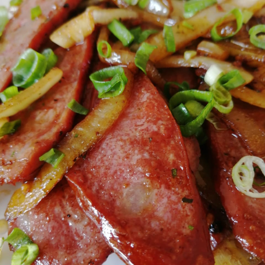 Apresentamos o prato 'Calabresa' da categoria 'Pratos'. Este prato é uma combinação saborosa de arroz soltinho, feijão fresquinho, suculenta calabresa e batatas fritas crocantes. é a refeição ideal para satisfazer seu apetite e proporcionar uma experiência gastronômica deliciosa. Perfeito para aqueles que apreciam a simplicidade de sabores autênticos e aconchegantes da comida caseira.
