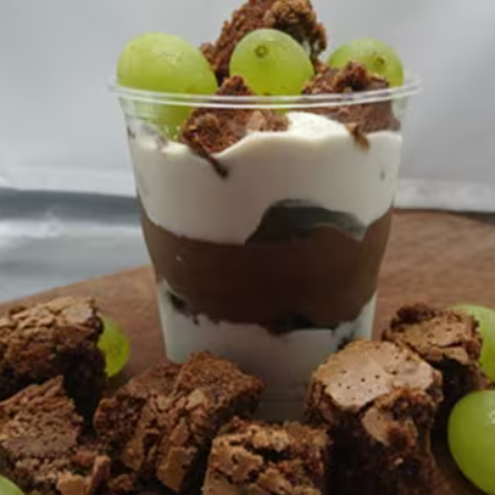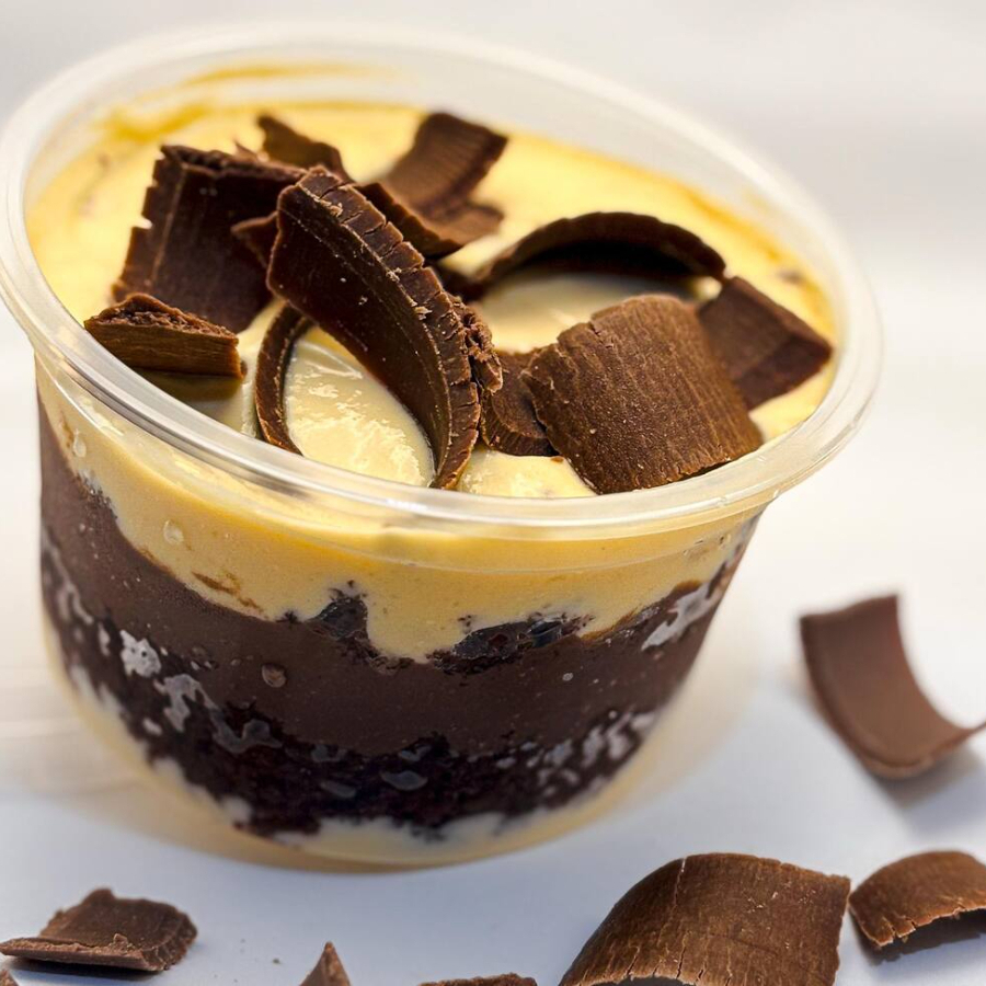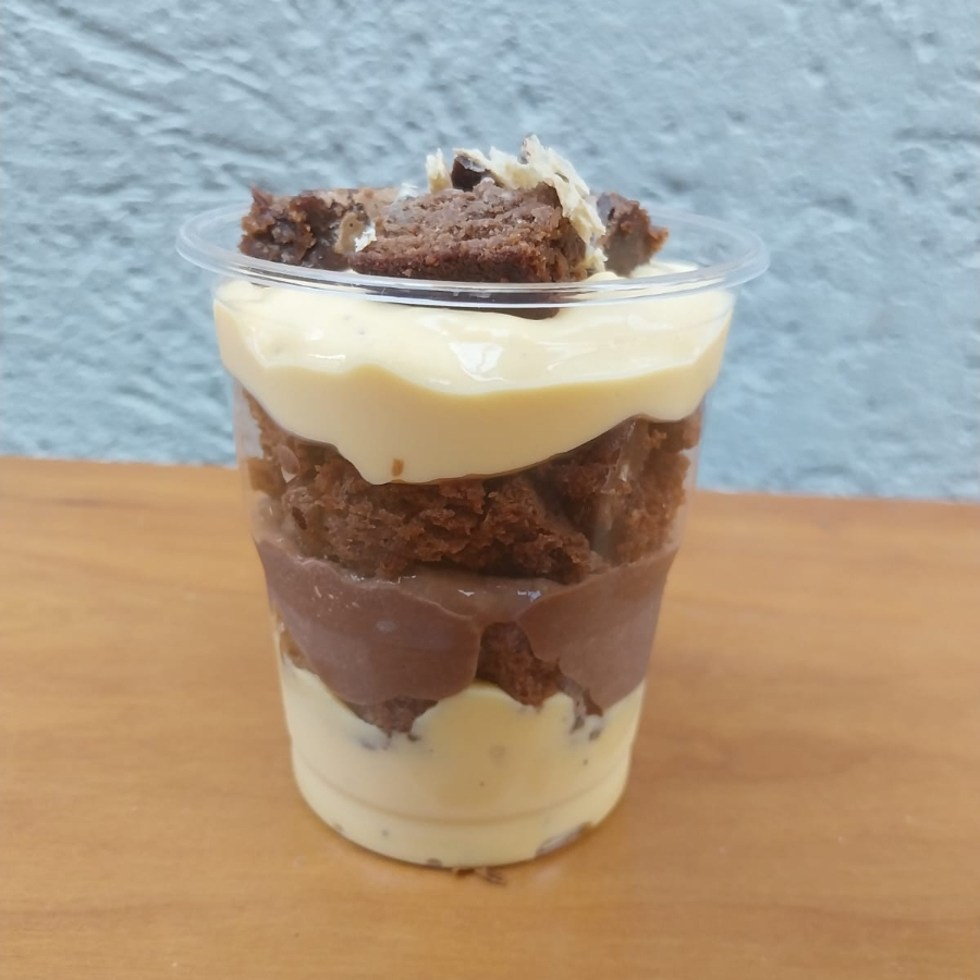 Copo da Felicidade de Prestigio com Brownie e Frutas Uma explosão de sabor em cada camada! Esse copo irresistível combina o doce e cremoso de Prestigio com pedaços generosos de brownie molhadinho e frutas frescas selecionadas. A harmonia perfeita entre o suave, o intenso e o refrescante — ideal para adoçar seu Dia com muita indulgência e frescor. Perfeito para quem ama sobremesas que encantam no sabor e na apresentação!