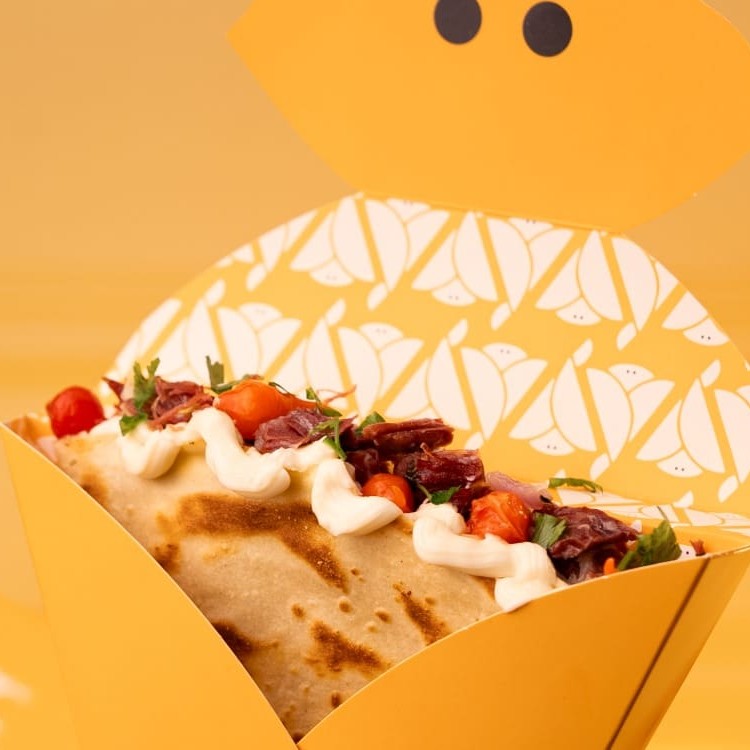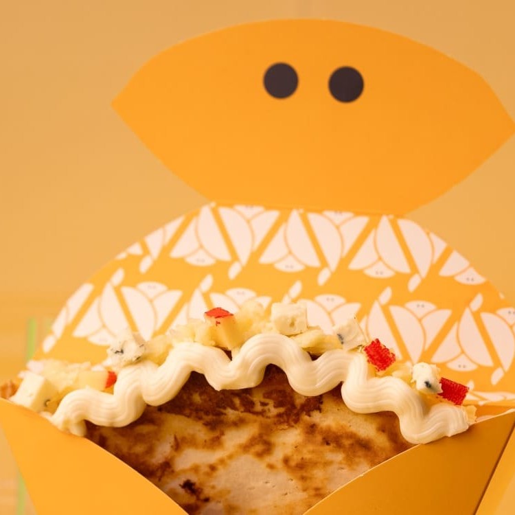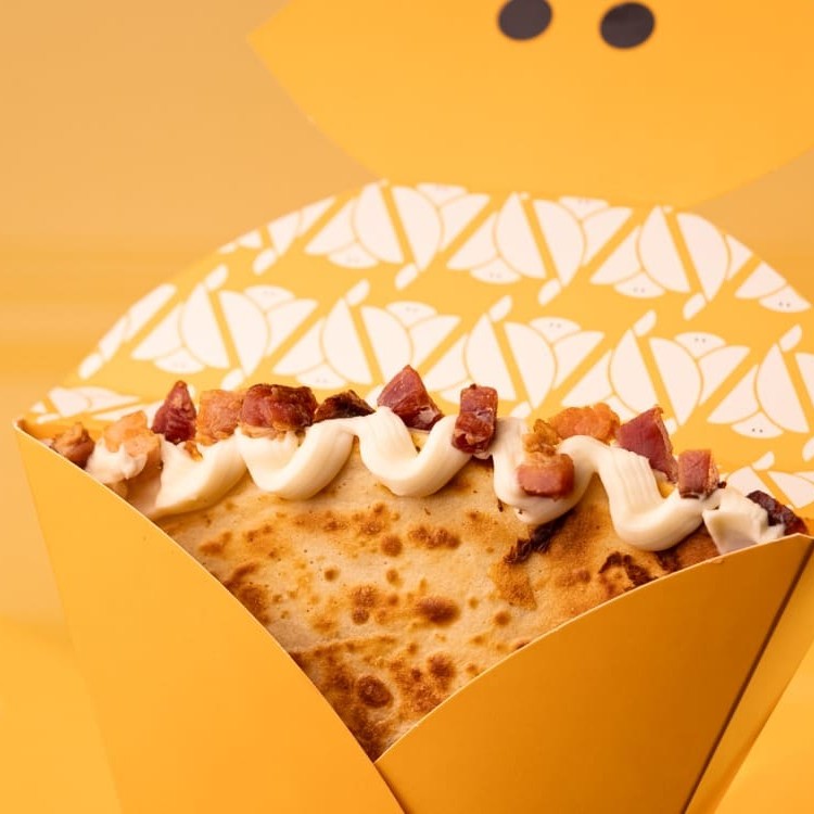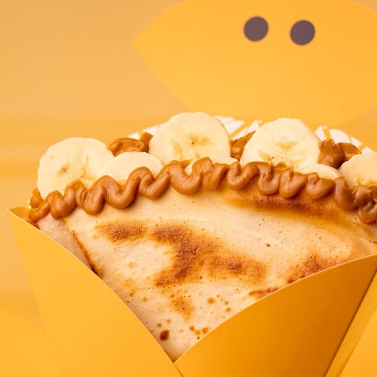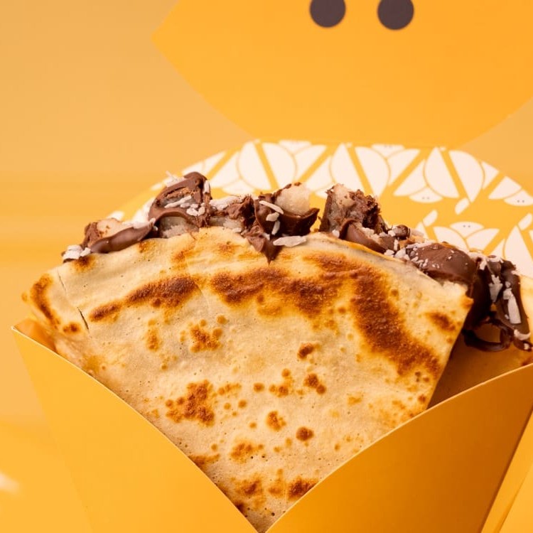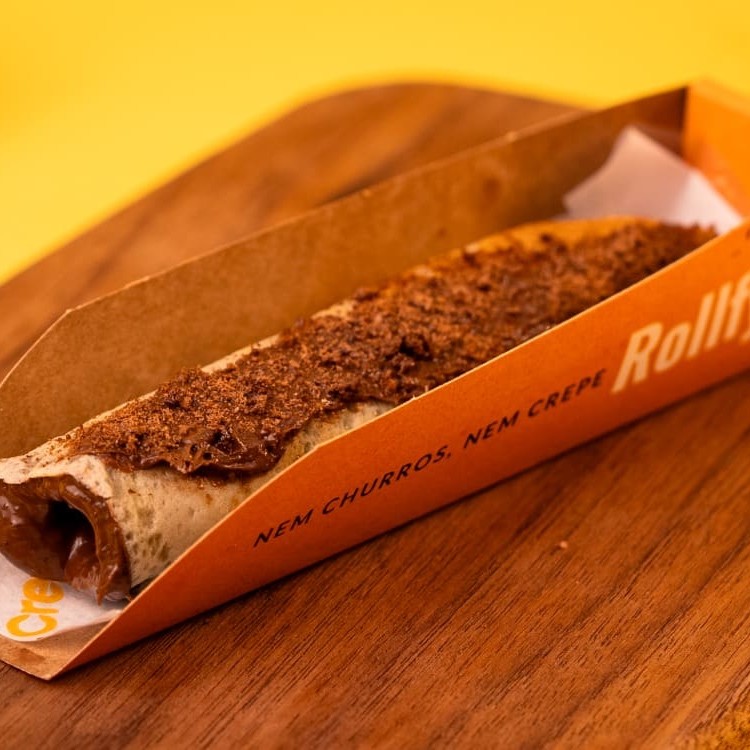 Crepe recheado com Apetitoso creme de avelã e Ovomaltine, envolvidos por uma massa saborosa fininha e crocante.