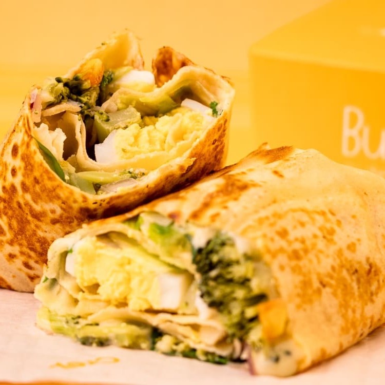 Massa crocante especial recheada com generosas porções de ovo cozido, azeitona, rúcula e alface americana frescas, tomate picado, brócolis refogado no azeite e cebola roxa.
