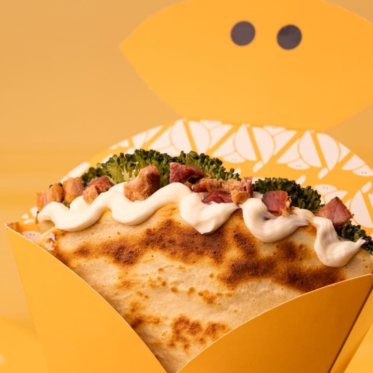 Crepe recheado com generosa porção de brócolis, Catupiry (Original) e cubos de bacon. Esse crepe serve uma pessoa. Geralmente, nossos clientes comem de 2 salgados, 1 doce + 1 bebida e ficam extremamente satisfeitos.