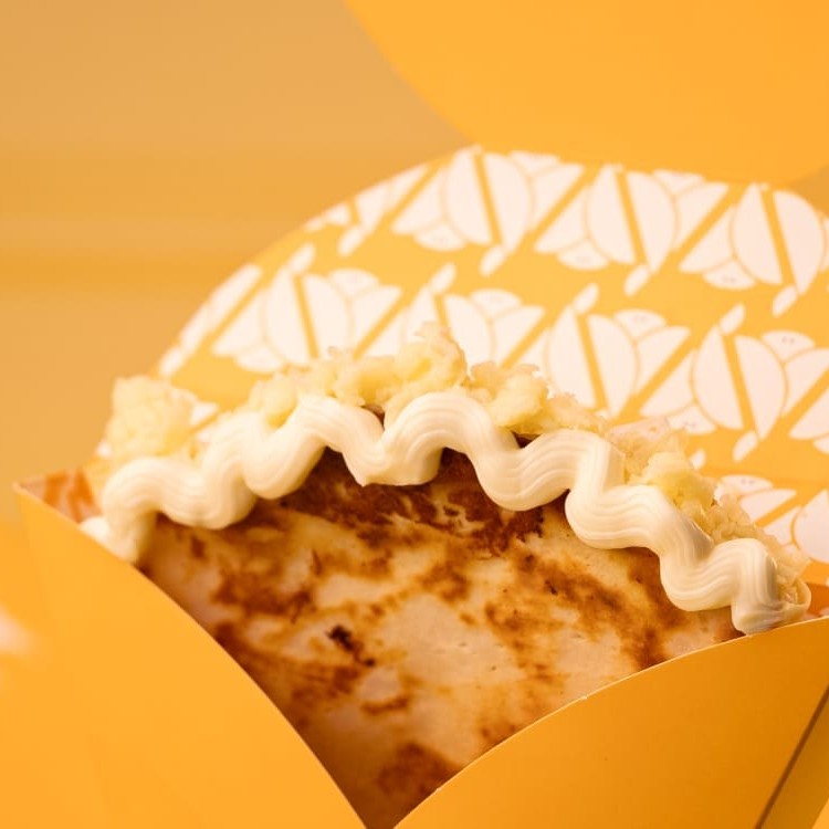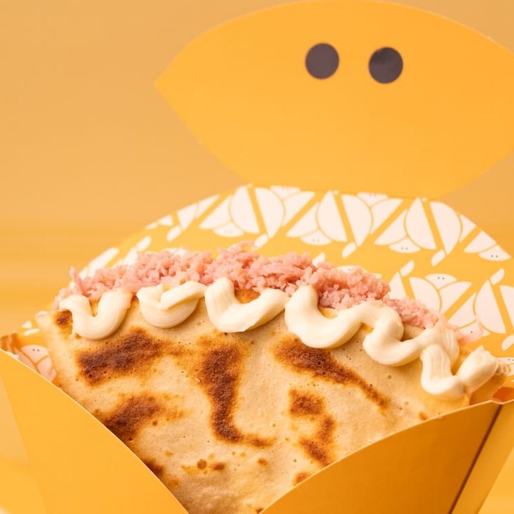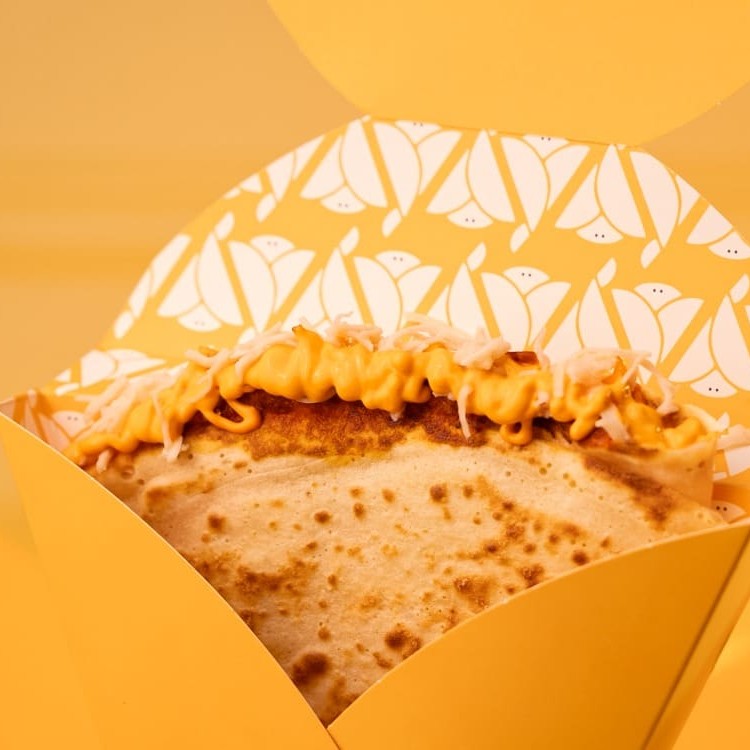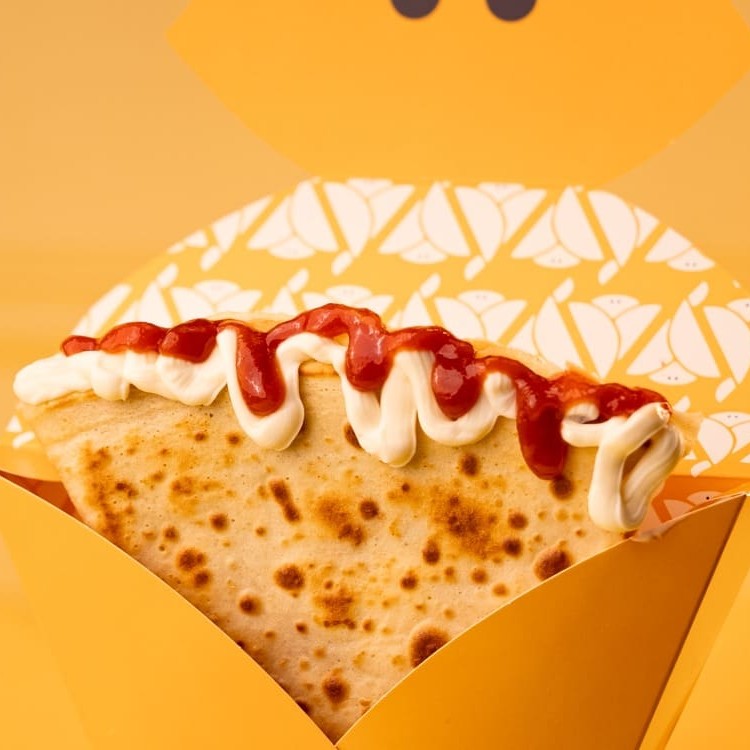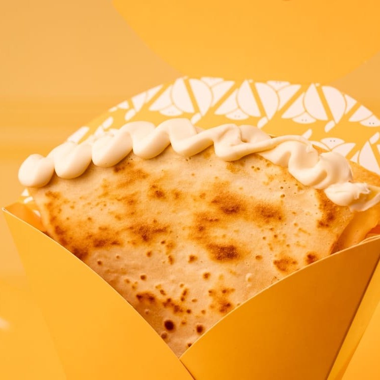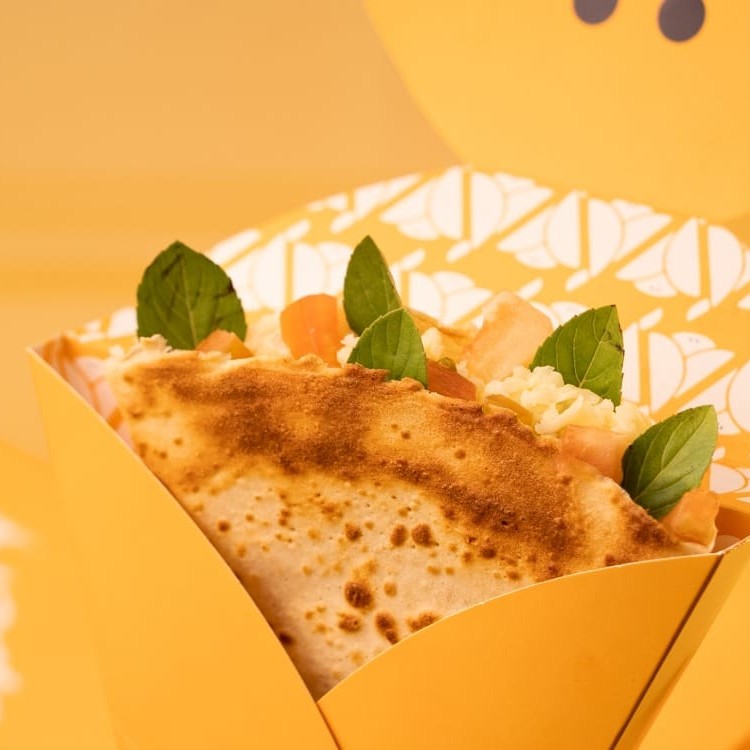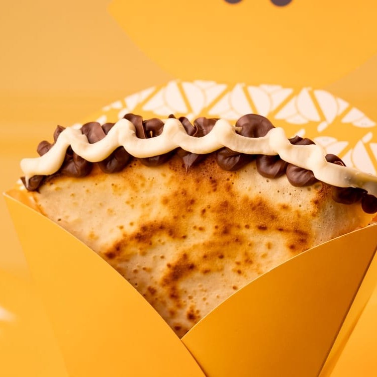 Crepe recheado com Apetitoso creme de avelã e Ovomaltine, envolvidos por uma massa saborosa fininha e crocante.