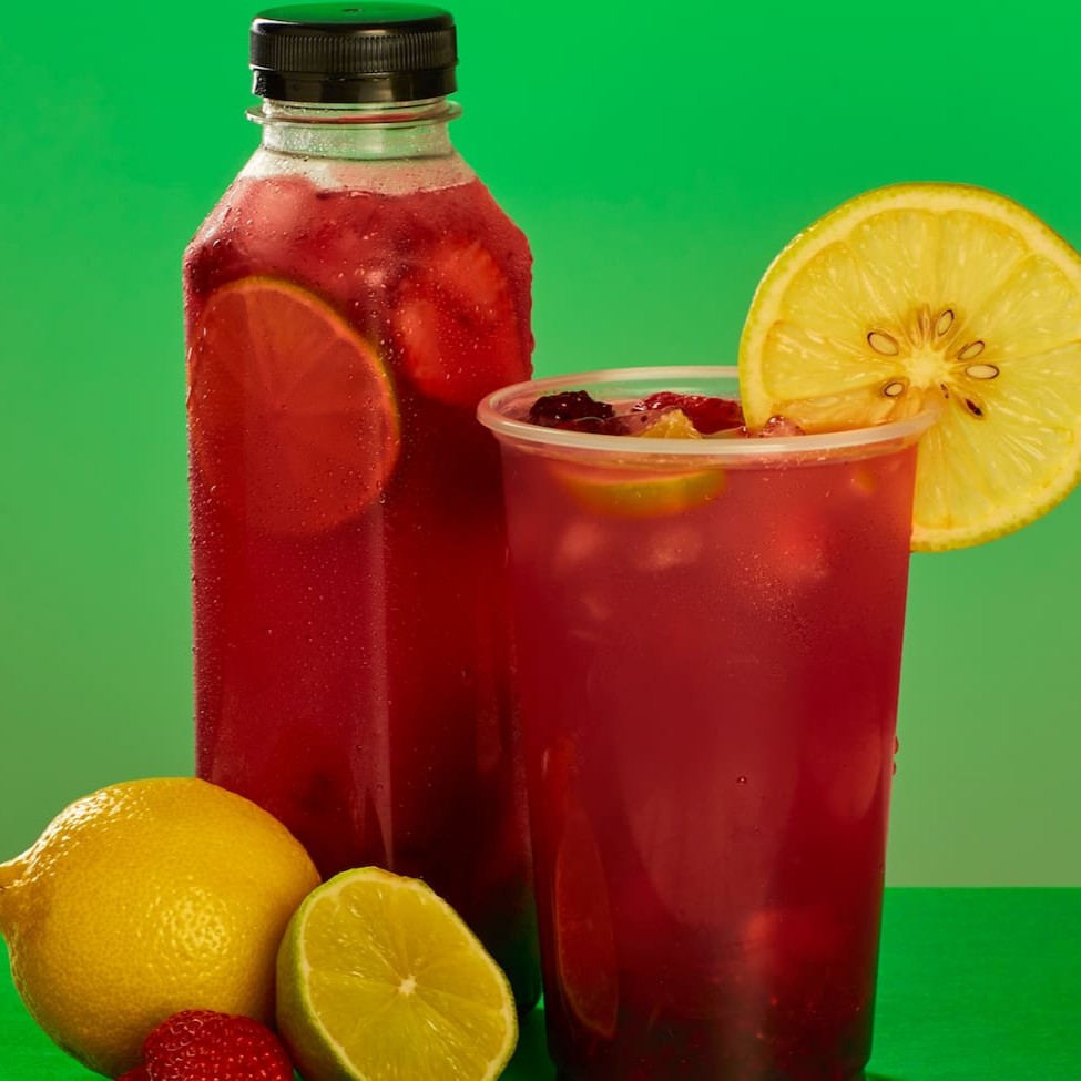 Um delicioso mix de limão Taiti, limão Siciliano, Amoras frescas, açúcar e água mineral gelada.