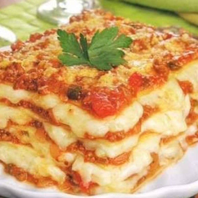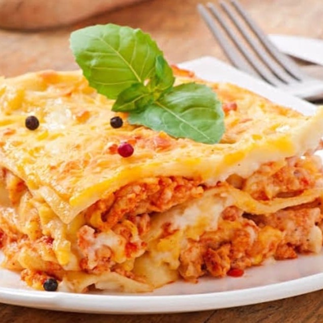 Nada básica! Molho de tomates pelados, carne moída magra e toque de bacon que se funde perfeitamente às camadas de massa, mussarela e molho bechamel. Finalizada com um delicioso Parmesão.
