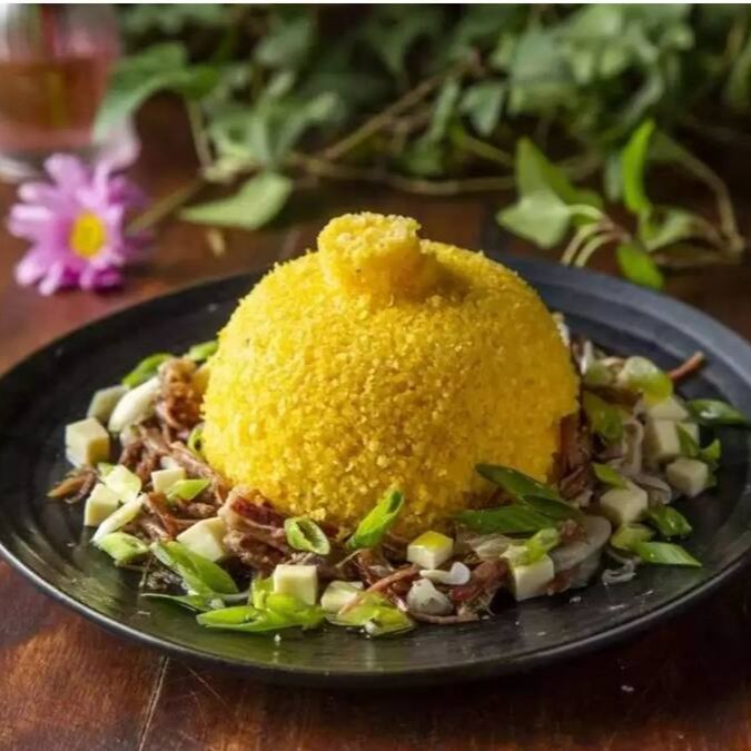Banhado na manteiga, recheado de carne seca, com cobertura de mussarela com porção de vinagrete que faz toda diferença, você pode turbinar o seu cuscuz, que tal?