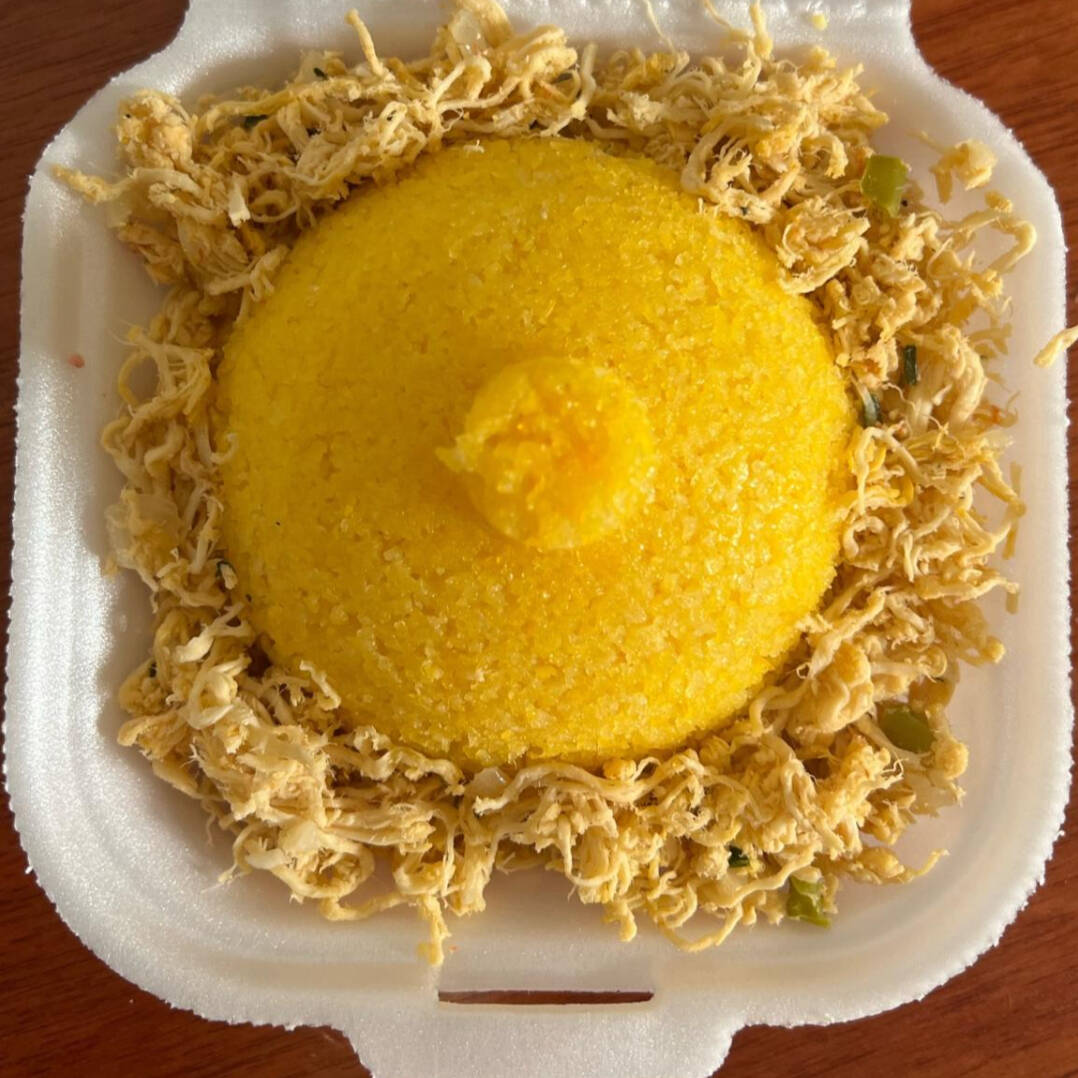 Cuscuz de frango desfiado com queijo mussarela