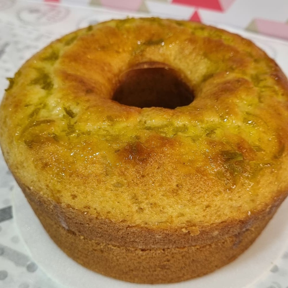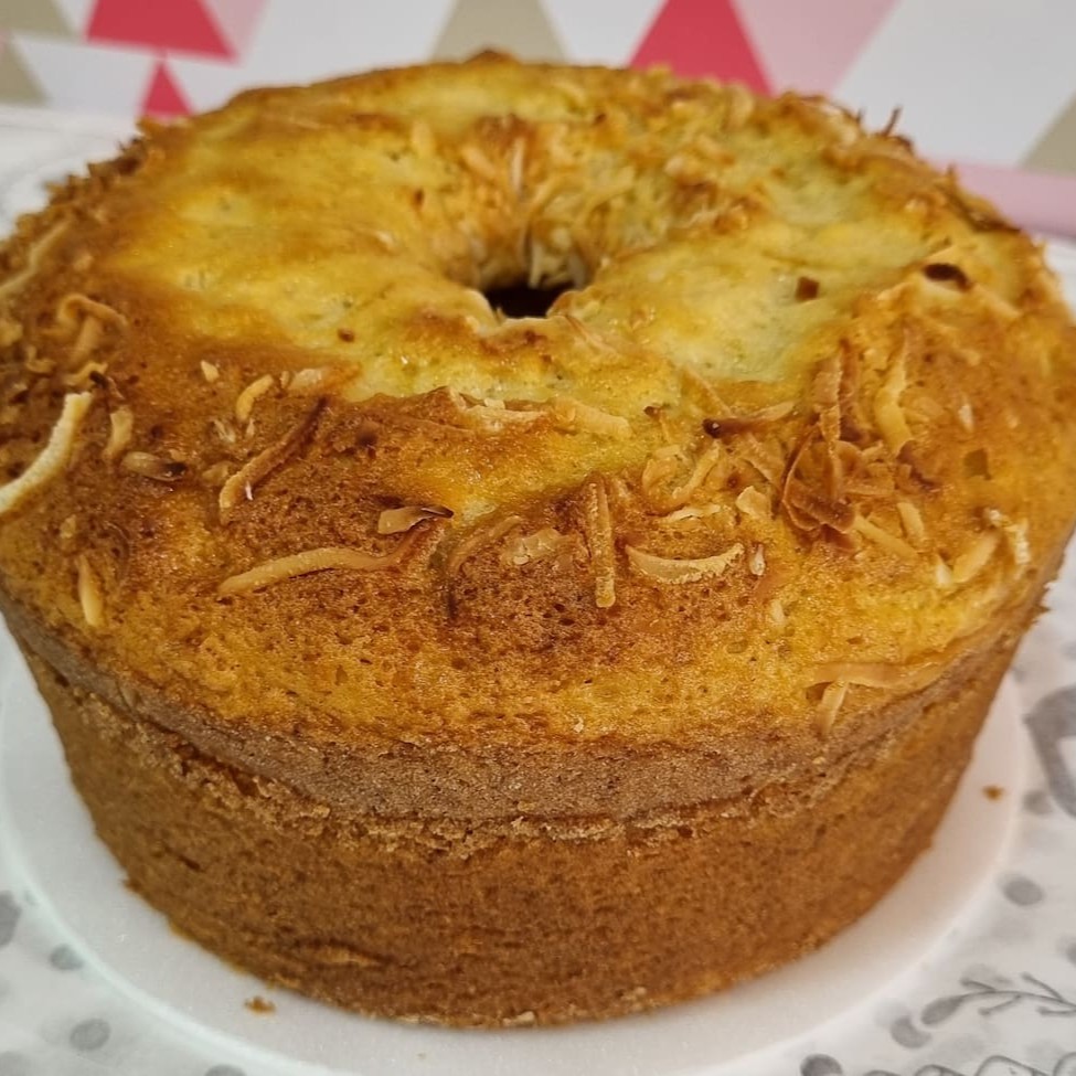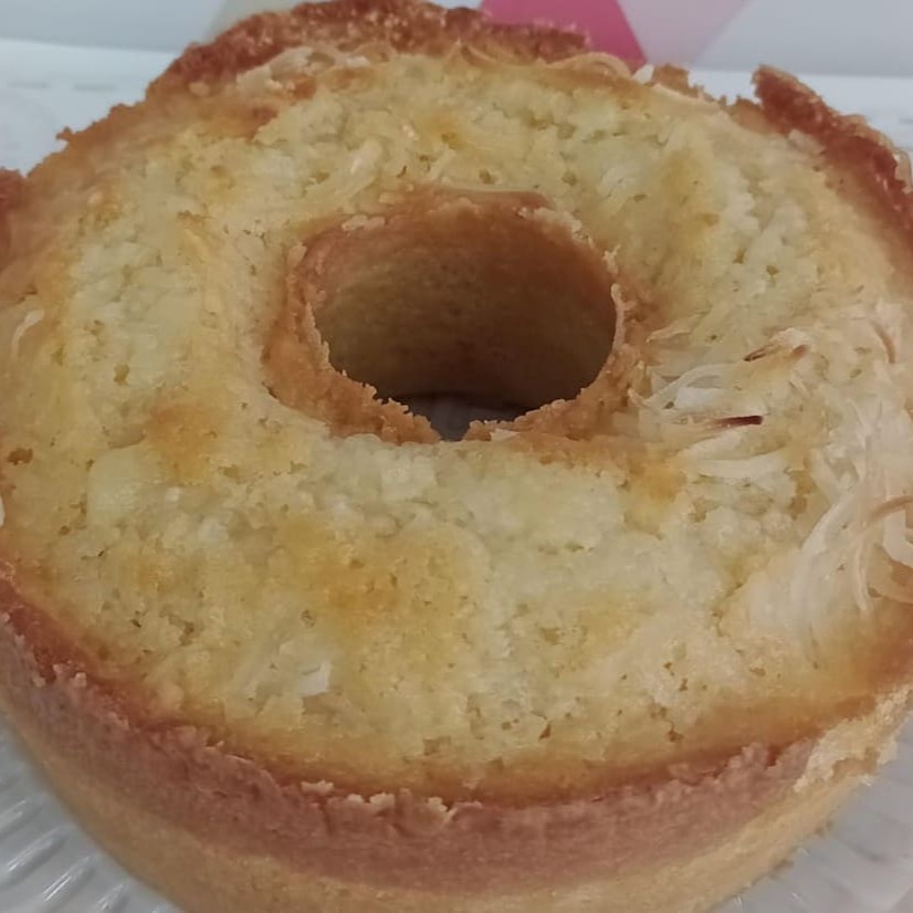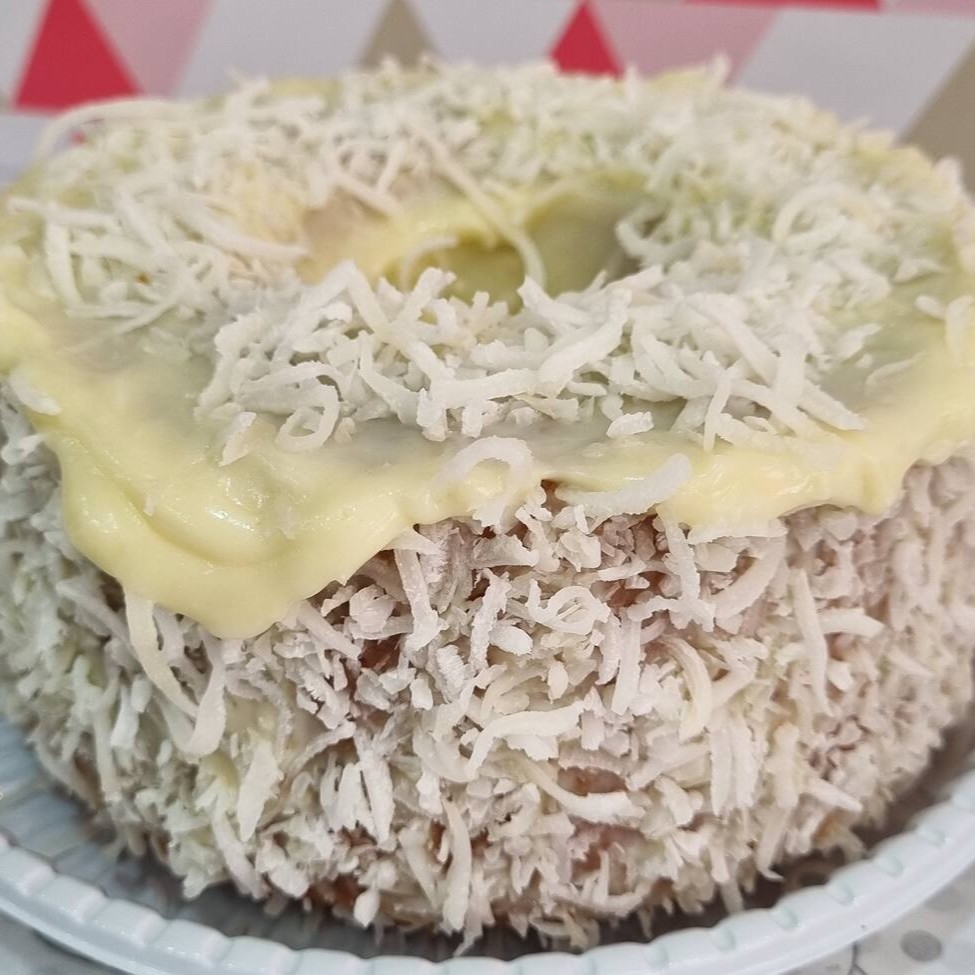 Nosso bolo caseiro de leite Ninho todo coberto com creme de Ninho e leite em pó