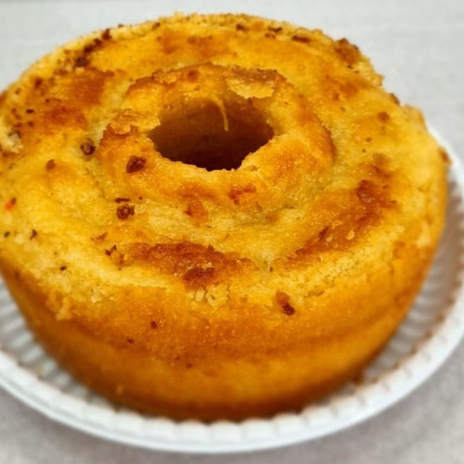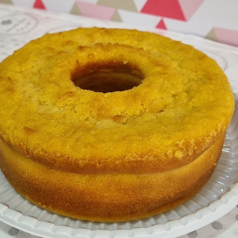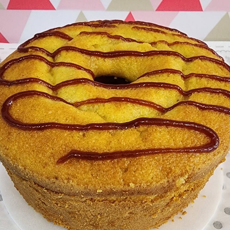 Bolo caseiro de fubá com goiabada por dentro e fora.