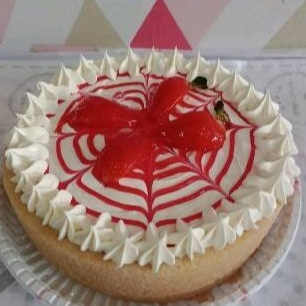 Massa de baunilha com recheio de creme de Ninho com morangos picados.