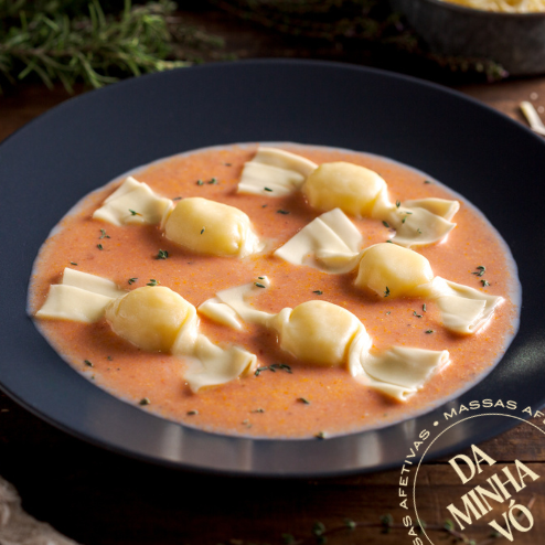 Massa artesanal redondinha e super recheada, para servir bem quentinha e deliciosa. ➡️ Massa congelada e de fácil preparo. Serve de 2 a 3 pessoas (450g). Molhos vendidos separadamente.