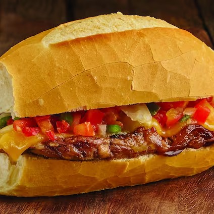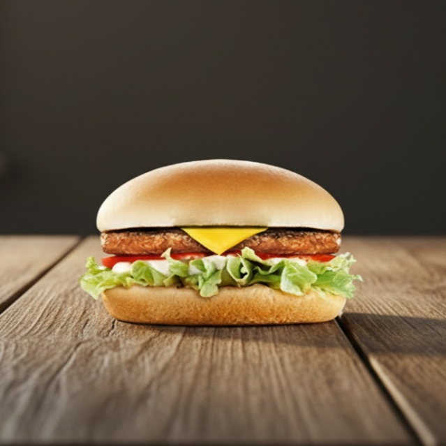 Pão ,alface , maionese, queijo prato, hambúrguer, tomate cozido