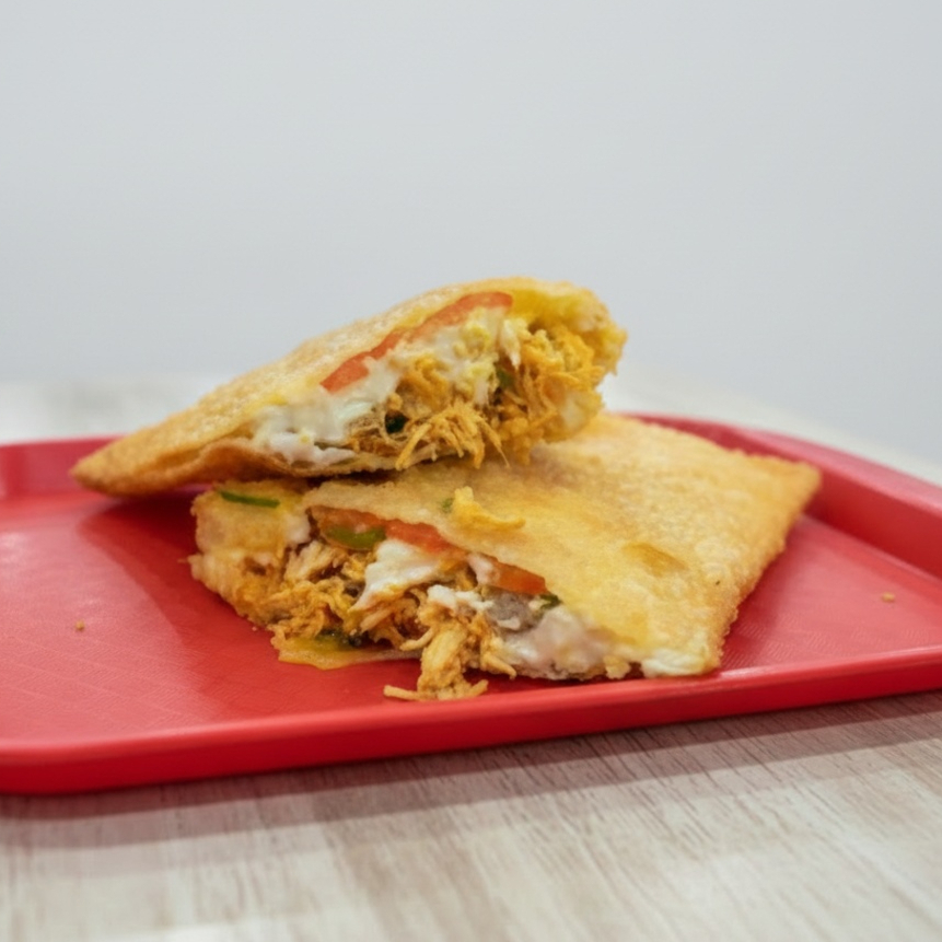 Frango temperado, queijo mussarela, cheddar, milho, ervilha e requeijão