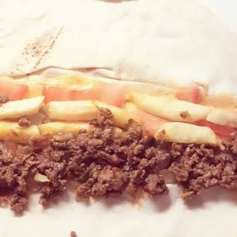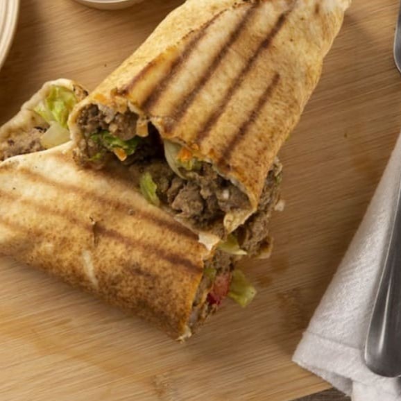 Carne moída com nossos temperos originais, pão árabe , creme de alho, muusarela ,cebola assada , milho , pimentão,