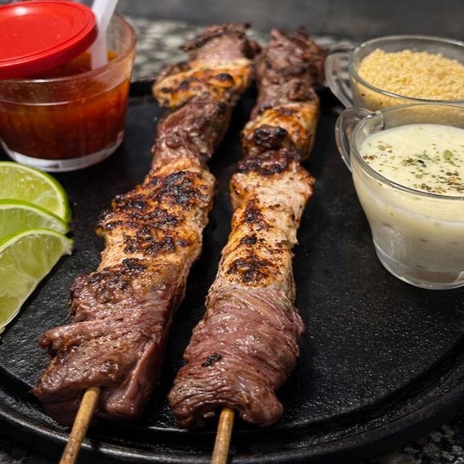 Espeto De Contra Filé | Suculento, Farofa Temperada, Molho De Alho E Pepsi