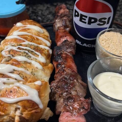 Espeto Misto (contra-filé E Linguiça Toscana) + Pão De Alho E Pepsi Lata