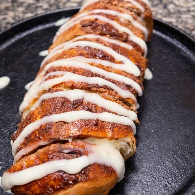 O Pão com Doce de Leite e Canela é uma verdadeira tentação! Pão quentinho, fofinho e recheado com doce de leite cremoso, combinado com o toque especial de canela, criando uma explosão de sabor a cada mordida. Perfeito para quem ama uma mistura de sabores doces e aconchegantes, ideal para o café da manhã ou lanche da tarde. Uma opção que vai conquistar seu paladar e deixar qualquer momento mais gostoso.